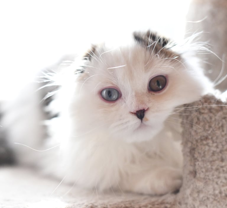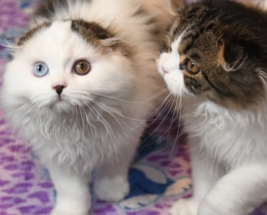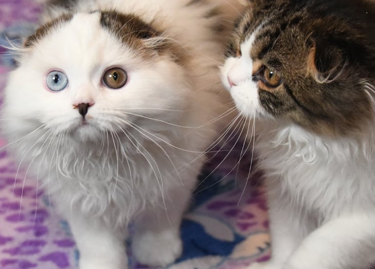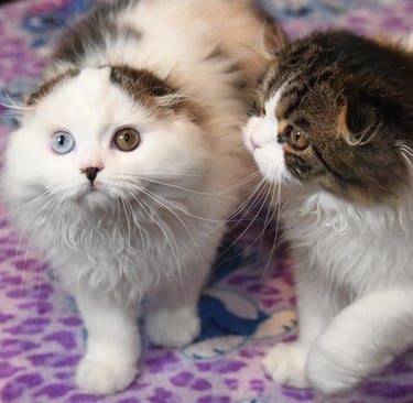 We are premier breeding cattery dedicated to raising healthy and affectionate Scottish Fold and Scottish Straight kittens. Our passion ensures each kitten is nurtured with love and care. Some of our kittens feature captivating eye colors, including ocean deep green, mystery copper, morning sky blue, and unique odd eyes.